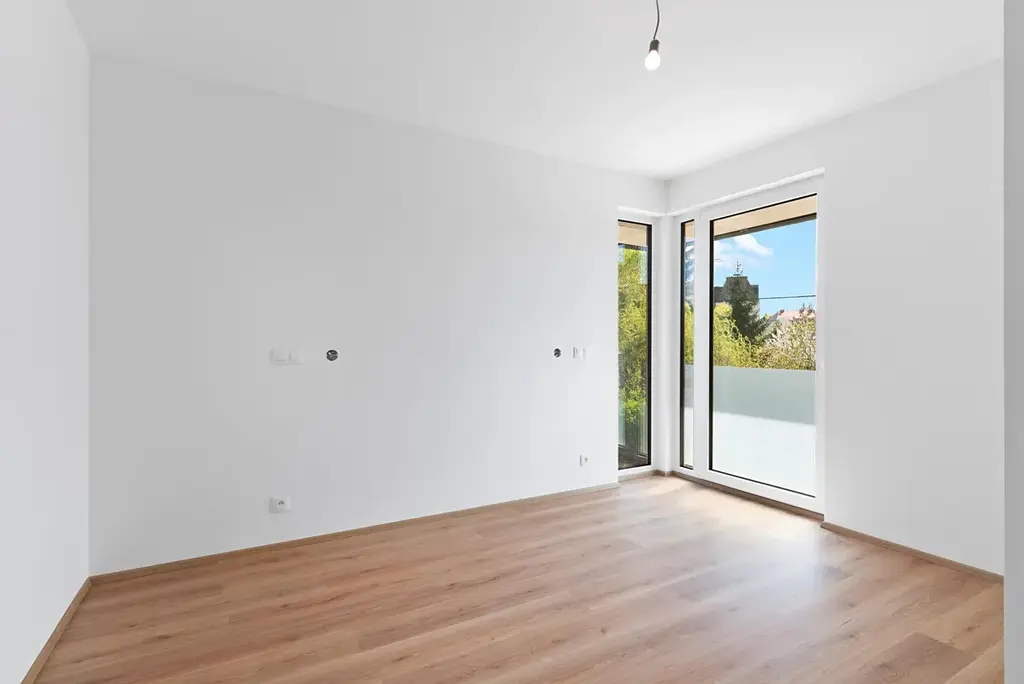 Díky francouzským oknům s izolačními trojskly je tento byt nádherně přirozeně prosvětlen a umožňuje vstup na zahradu ze všech místností kromě ložnice. Byt je vybaven podlahovým vytápěním s termostatem v každé místnosti, což vám umožní efektivní regulaci teploty podle vašich potřeb. Kuchyňská linka není součástí vybavení, můžete si ji navrhnout přesně podle vlastních představ a stylu. K bytu náleží prostorná sklepní kóje umístěna v 1. podzemním podlaží.