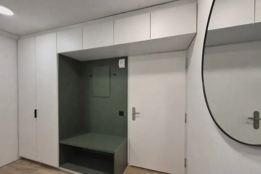 Po dohodě je možné za příplatek zajistit kompletní dovybavení bytu nábytkem na míru od našeho truhláře podle vlastního návrhu či návrhu architektky, a to bez dlouhých čekacích lhůt.