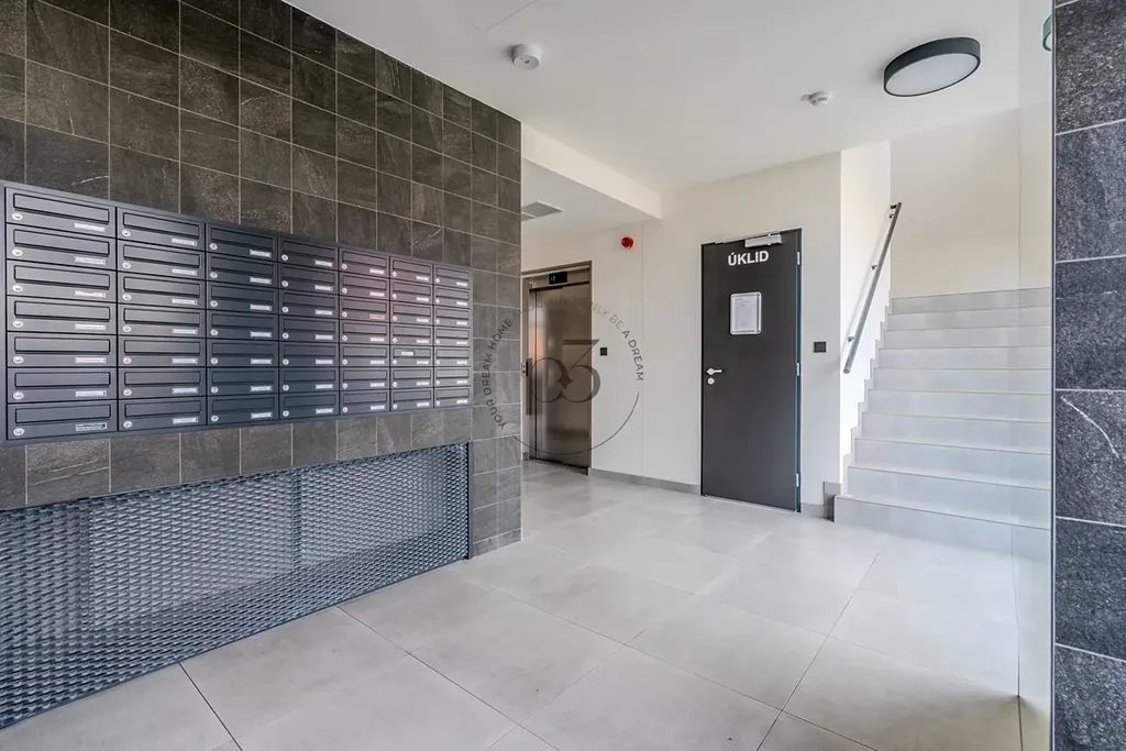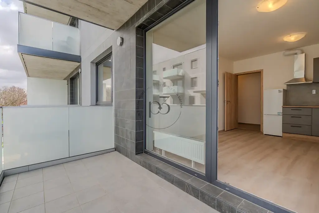 Nabízíme Vám k dlouhodobému pronájmu zcela nový byt o dispozici 2+kk nacházející se ve 1. patře novostavby s výtahem, o celkové výměře 43m2 a balkónem 7m2 v klidné a vyhledávané lokalitě Prahy 9 - Prosek. Byt je situován na západní stranu.