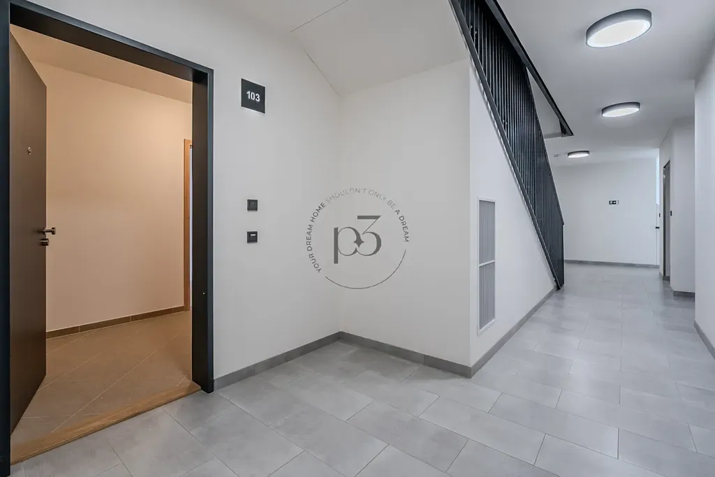 Byt nabízí obývací pokoj s přístupem na balkón a novou kuchyňskou linku včetně spotřebičů. Ložnice poskytuje dostatek soukromí a pohodlí. Koupelna je vybavena vanou a umyvadlem a WC. Součástí výbavy je i pračka. Chodba je prostorná pro umístění skříní pro dostatek úložného prostoru.