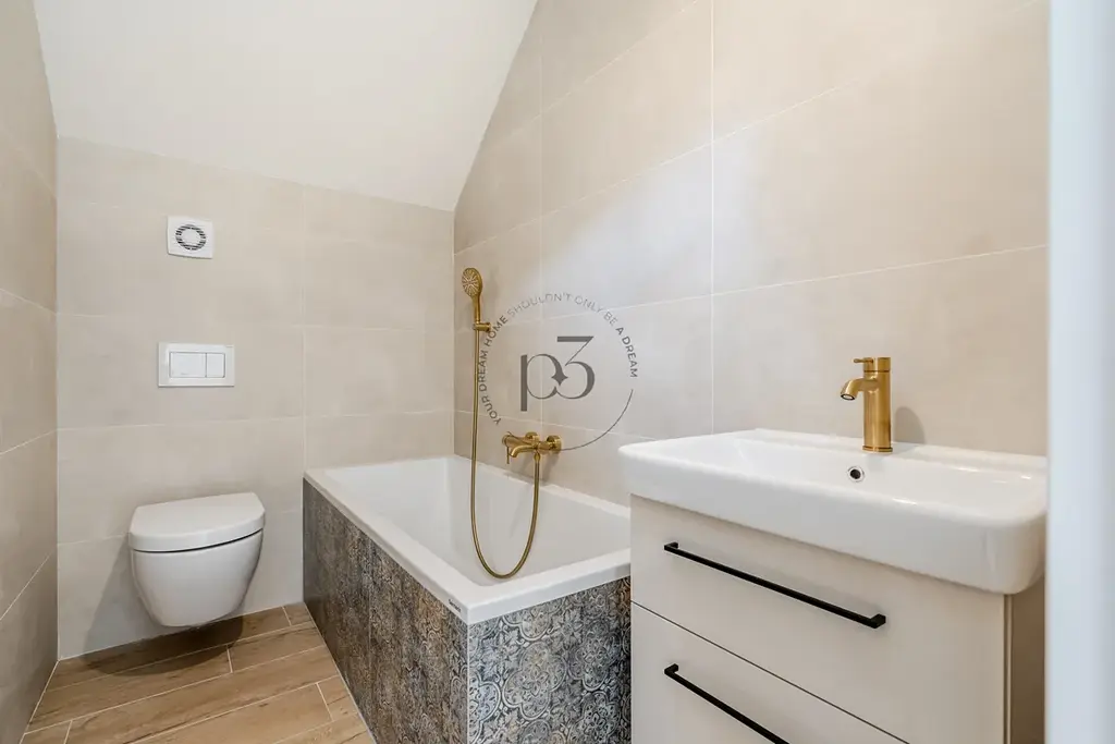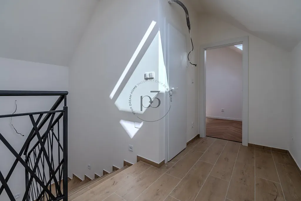 Dům je postavený z vysoce kvalitních materiálů, kondenzované plynové kotle Baxi, podlahové vytápění, příprava na klimatizace a kuchyně, koupelny jsou vybaveny kvalitní sanitou např. značky Villeroy&Boch. Energetická náročnost budovy je B.