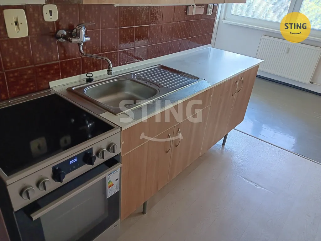 Byt je vybavený kuchyňskou linkou a elektrickým sporákem. Pro zbytek prostoru máte volnou ruku k zařízení podle svých představ.