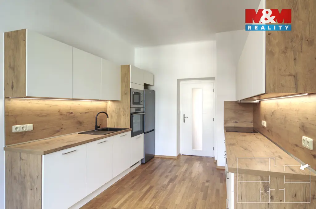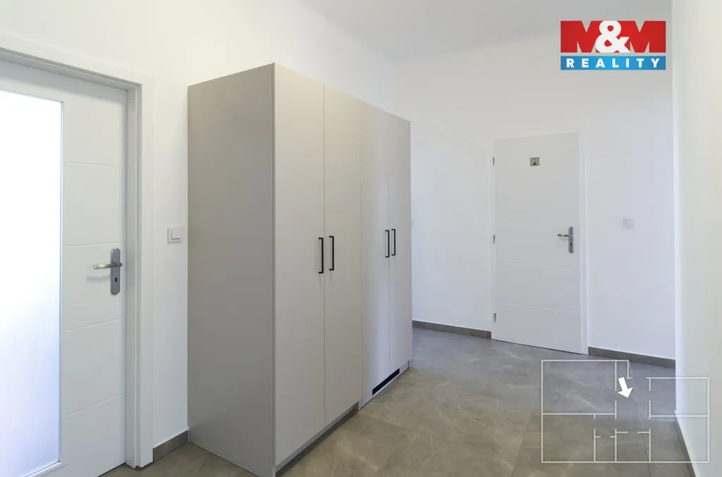 Dispozice zahrnuje dostatek úložných prostor, koupelnu s toaletou, další samostatnou toaletu, tři velké neprůchozí pokoje a moderní kuchyni s prostorem pro jídelní kout. Byt je částečně vybavený, ale pokoje jsou ponechány prázdné, abyste si je mohli zařídit přesně podle Vašich představ.