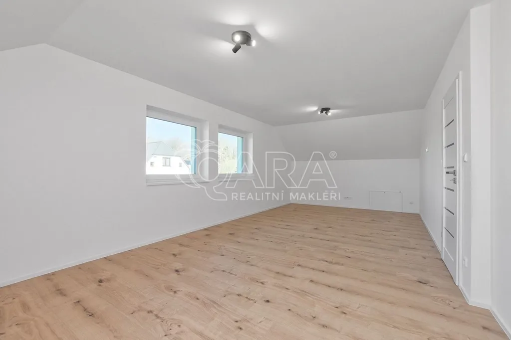 Dům byl dokončen v roce 2024 a je navržen tak, aby splňoval nároky na moderní a úsporné bydlení. Na první pohled vás zaujme velký obývací pokoj propojený s kuchyní o rozloze 50 m, který disponuje přímým vstupem na terasu.