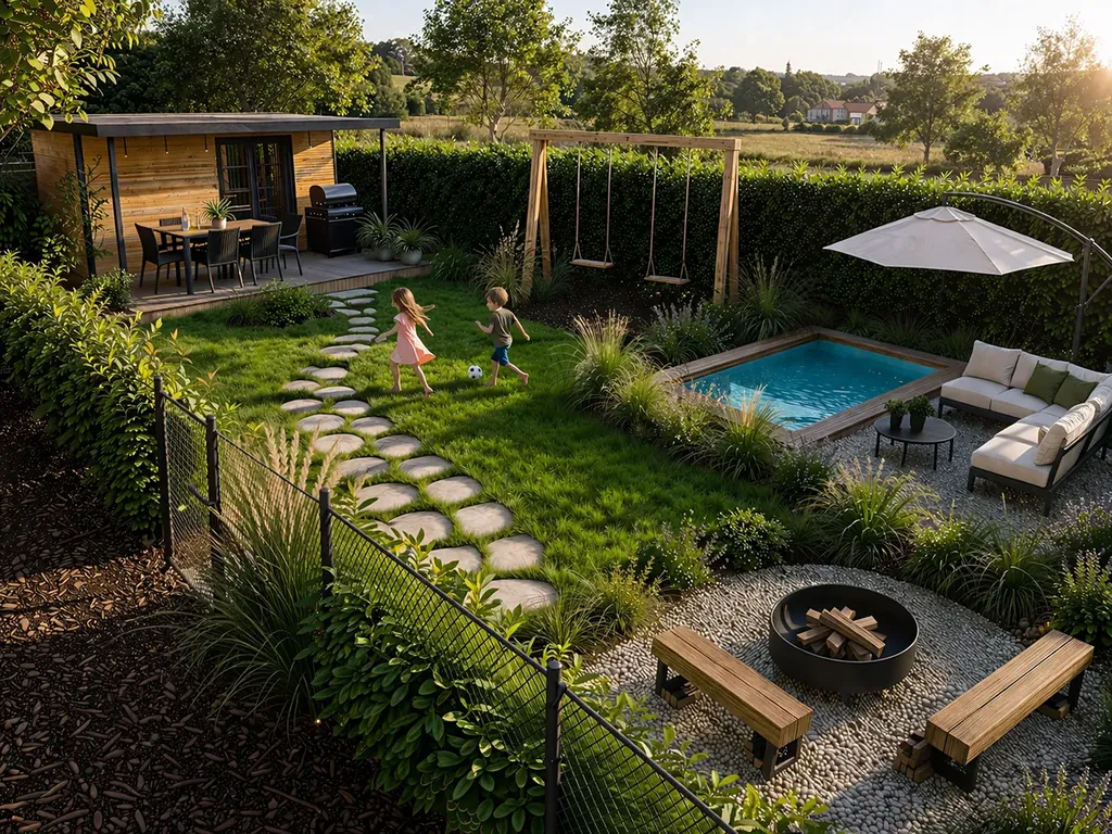 Klidná slepá ulice a stezka u řeky jsou jen začátek. To pravé rodinné dobrodružství začíná na vaší vlastní zahradě (173 m²).