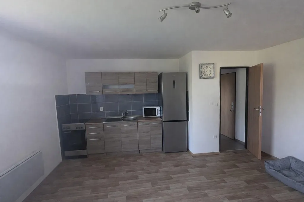 V jednom z pokojů se nachází kuchyňská linka s elektrickými kamny. V koupelně je bojler pro ohřev vody, přípojka na pračku, umyvadlo, prostorná vana a WC. Celá koupelna je obložena vkusnými obklady. Fotografie upraveny bez osobních věcí nájemníka. Byt bude pronajímán bez zařízení.