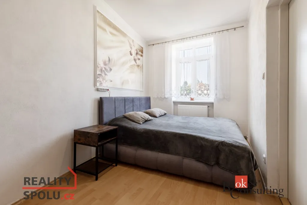 Dispozice: samostatná ložnice, průchozí obývací pokoj s přístupem do kuchyně, předsíň, koupelna s WC. Součástí je i sklepní kóje.