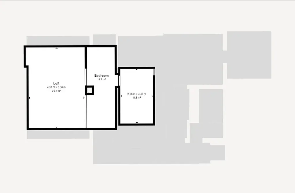 o Menší byt: Rekonstrukce v roce 2022, obsahuje vstupní chodbu, koupelnu, ložnici, obývací pokoj, kuchyni se spíží a přístup do sklepa.