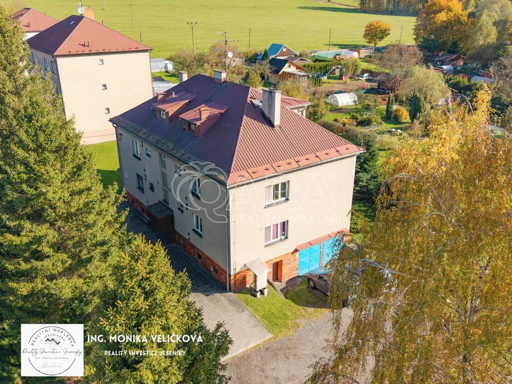Součástí prodeje je také podíl 1/6 na pozemku kolem domu o celkové výměře 2 168 m, který slouží k přístupu a společnému užívání.