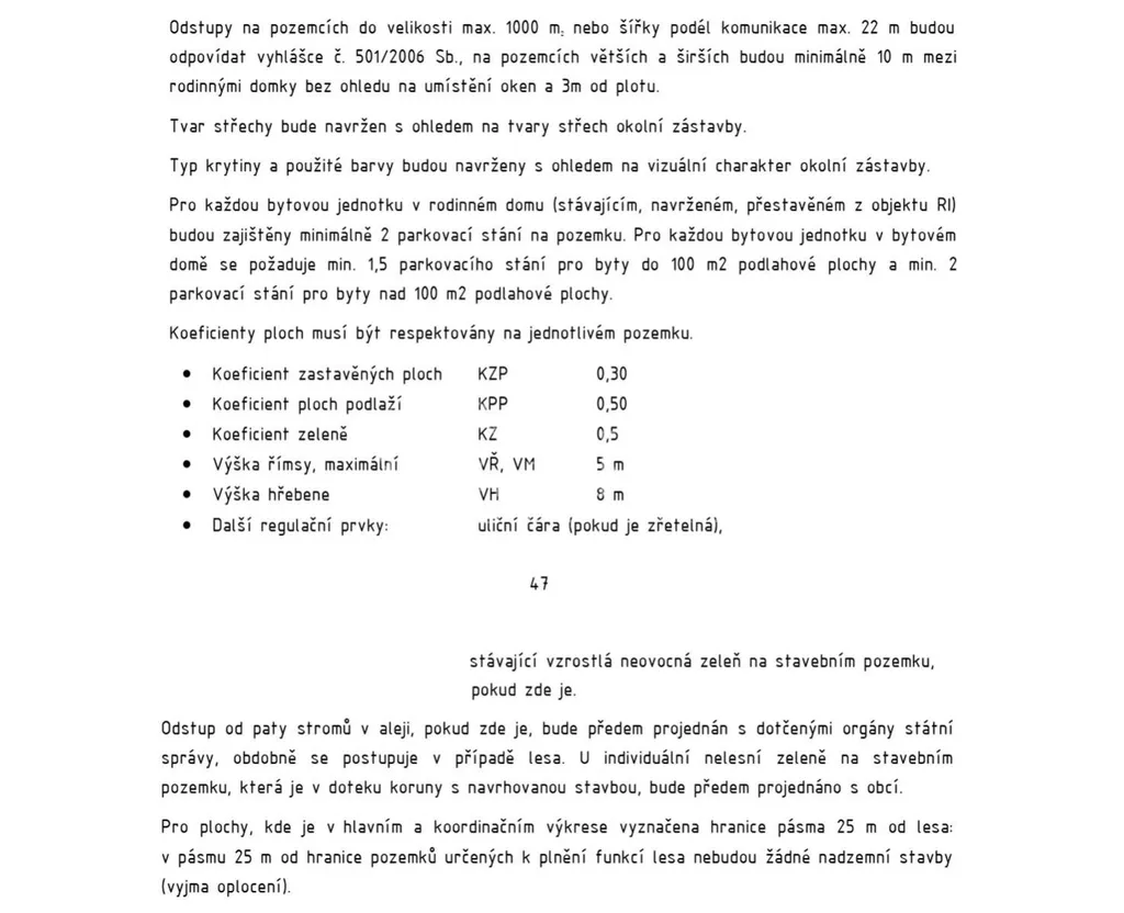 Koeficient zastavěných ploch: 15 %