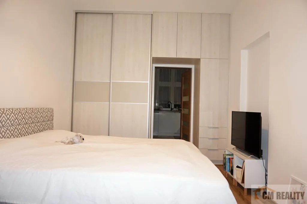 Byt prošel v roce 2017 rekonstrukcí, koupelna je společná s WC, ta prošla rekonstrukcí o pár let dříve. V koupelně je umyvadlo, WC, vana a místo pro pračku. V koupelně je situován i kombinovaný kotel pro ÚT a ohřev vody. Kuchyňská linka je na míru, vč. vestavěné myčky, plynové varné deska, digestoře a vestavěné trouby. V rámci kuchyňské linky je prostor pro volně stojící lednici. V ložnici jsou vestavěné skříně na míru. Součástí pronájmu je kuchyňská linka vč. vestavěných spotřebičů a vestavěná skříň v ložnici. Ostatní nábytek na fotografiích není předmětem nájmu.