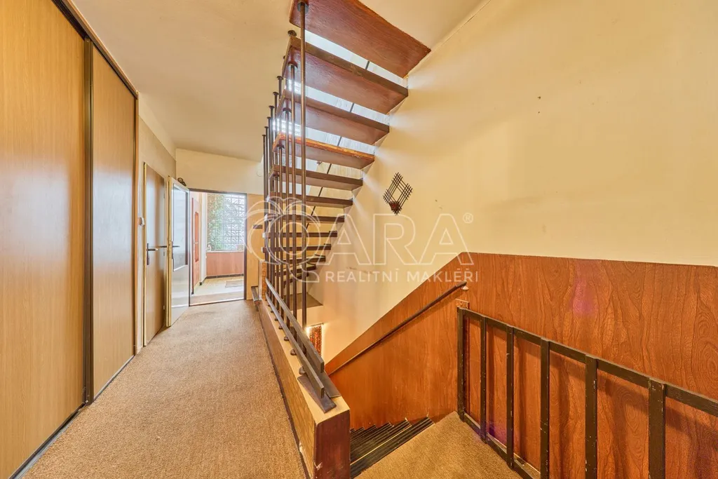 Ve druhém patře se nachází tři prostorné pokoje, z nichž dva jsou propojené balkonem, což poskytuje příjemné výhledy a možnost relaxace na čerstvém vzduchu. Obývací pokoj je propojen s terasou o výměře 21 m, ze které se dostanete přímo na zahradu. Tato zahrada je vynikajícím místem pro rodinné oslavy či odpočinek a nabízí prostor pro pěstování rostlin nebo zahradničení.