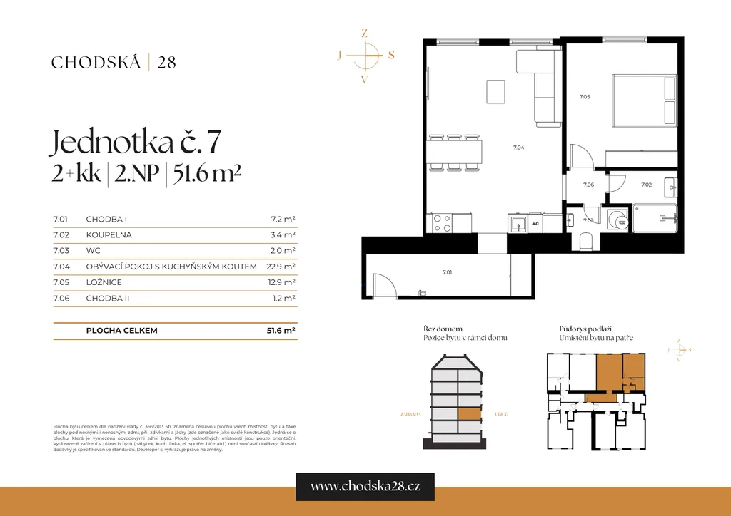 Přímý majitel nabízí k prodeji světlý byt 2+kk o velikosti 54,6 m², jednotka č. 7, situovaný v 2. nadzemním podlaží zrekonstruovaného cihlového domu s výtahem v ulici Chodská, v srdci oblíbené čtvrti Praha 2 - Vinohrady. Byt je součástí projektu CHODSKÁ 28 s dokončením v polovině roku 2026. Prohlídky jsou možné ihned.