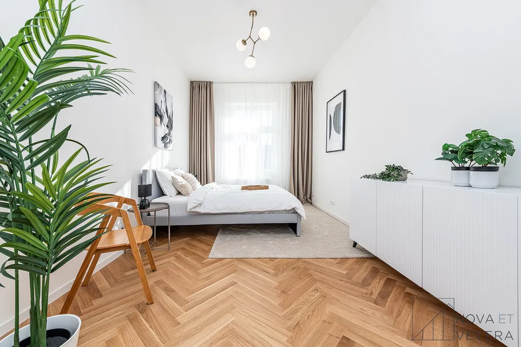 Vysoký standard kompletní rekonstrukce zahrnuje nové rozvody elektřiny, vody a odpadů. Dále rekonstrukce zahrnuje dřevěné parketové podlahy, kvalitní velkoformátové obklady a dlažbu od italského dodavatele MARAZZI. V koupelně a na toaletě naleznete sanitu značky GROHE. Moderní kuchyňská linka disponuje mimo jiné kvalitními spotřebiči značky BOSCH a zapuštěným granitovým dřezem.