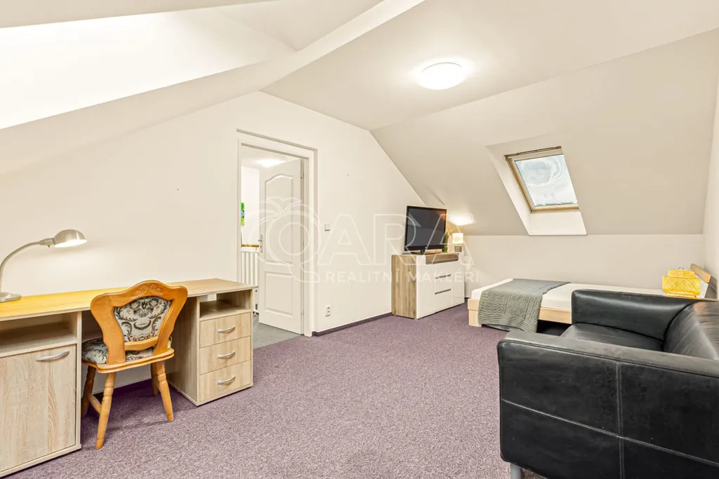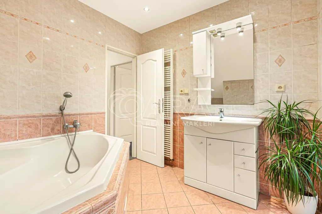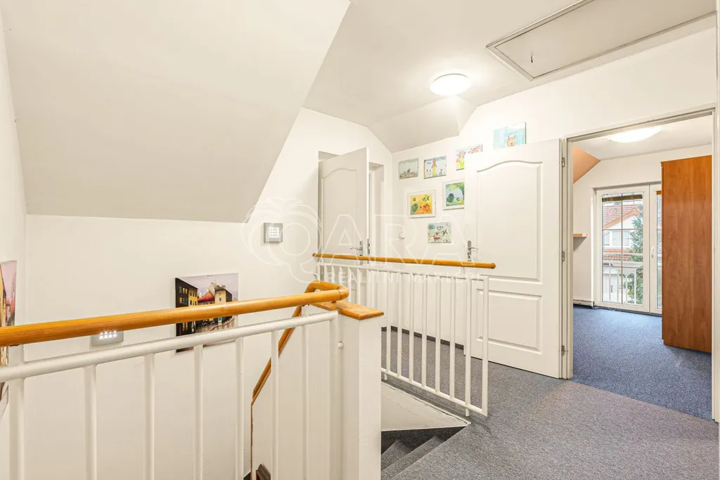 Velmi dobře udržovaný dům 5+kk nabízí téměř dvě stovky metrů čtverečních prostoru. Díky panoramatickým francouzským oknům je světlo hlavním hostem v přízemí i v patře. Najdete tu praktické vestavěné skříně a koupelna potěší velkorysým prostorem s rohovou vanou a výhledem na oblohu.