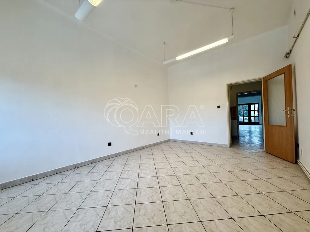 Prostor má praktické a přehledné dispoziční řešení. Hlavní místnost o výměře 38.5 m2 nabízí otevřený a světlý prostor vhodný pro provozovnu, kancelář nebo obchod. Na ni navazuje druhá samostatná místnost o velikosti 18 m2, kterou lze využít jako další prodejní část, kancelář, zázemí nebo sklad. Součástí prostoru je kuchyňka o výměře 5.7 m2 a sociální zázemí s WC a umyvadlem o celkové ploše 2.85 m2.