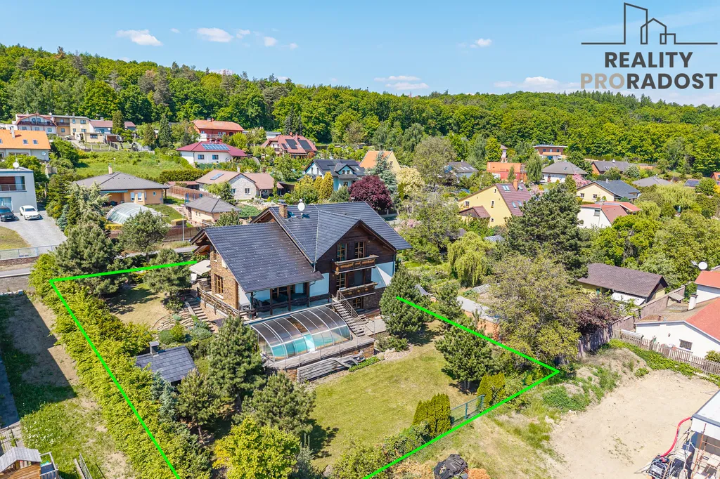 Kolem domu se rozprostírá udržovaná zahrada se vzrostlými stromy a keři, kde můžete trávit chvíle odpočinku. Naleznete zde zděný a zastřešený altán s centrálním grilem pro společné chvíle s přáteli. Na něj plynule navazuje zahradní jezírko. Neméně zajímavý pro Váš relax bude krytý bazén 7x3,5 m s protiproudem pro udržení fyzičky a velká terasa s výhledem do zeleně, kde můžete s rodinou trávit příjemné chvíle. Zavlažování zahrady zajišťují čtyři okruhy z retenční nádrže s obsahem 6 m3. Sekání trávníku za Vás zastane robotická sekačka.