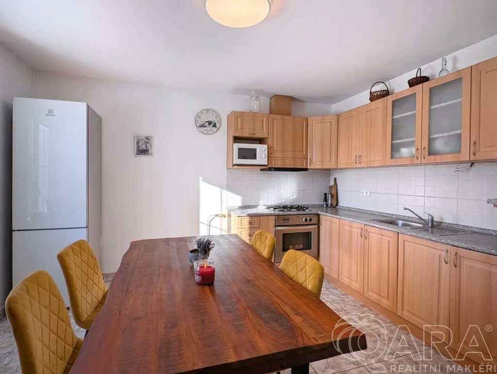 Dům má dispozici 4+kk a je řešen s důrazem na praktičnost a pohodlí pro každodenní život rodiny. Hlavní obytný prostor tvoří kuchyňský kout s jídelnou propojený s obývací částí, jejíž dominantou je krb. Ten vytváří příjemnou atmosféru domova a zároveň slouží jako efektivní zdroj tepla teplo z krbu je rozváděno do radiátorů v celém domě. Prostor je světlý, otevřený a přirozeně se stává centrem rodinného života.