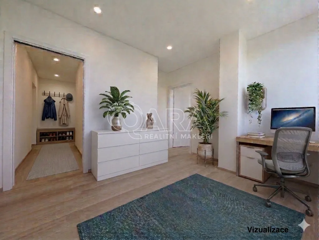 Bonusový prostor: K bytu náleží uzamykatelná vstupní chodbička (společná s jedním sousedem), ideální pro botník, kočárek nebo sportovní vybavení.