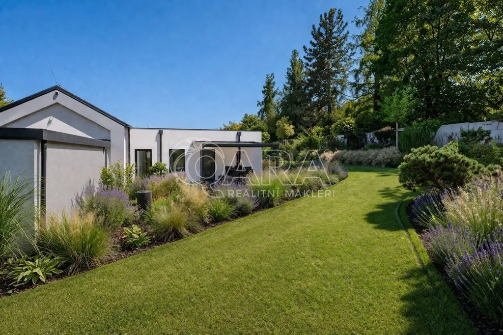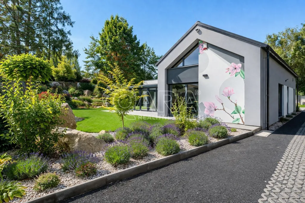 Zprostředkujeme Vám ke koupi moderní, reprezentativní, designový, maximálně funkční vilový bungalov (dřevostavba) s obytnou plochou 145 m2, se zimní a architektonickou zahradou, situovaný v nejprestižnější části Kamenice Štiřín, v klidové zóně u zámku a golfového hřiště. Tento výjimečný dům je vystavěn na pozemku o celkové ploše 1 205 m2 a byl kolaudován v roce 2023. Dominantou stavby je originální ručně malovaná fasáda od akademického malíře, která domu dodává naprosto jedinečný charakter a činí jej skutečným designovým originálem. Parcela je bez přímých sousedů, vzrostlé stromy vytvářejí přirozené soukromí i mikroklima ráno vás probudí ticho a zeleň, večer si užíváte jemně nasvícenou zahradu místo pohledů do cizích oken.
