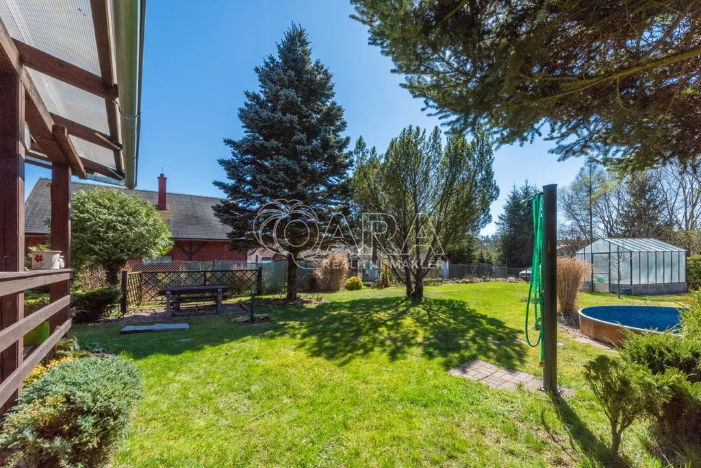 Na zahradě je možné se osvěžit v zapuštěném bazénu, který je ideálním místem pro letní pobyt. Pro milovníky zahradničení je připraven skleník v hodnotě 150 000 Kč, kde si můžete pěstovat vlastní zeleninu a bylinky. Díky tomu si můžete vychutnat čerstvé a zdravé potraviny přímo z vaší zahrádky.