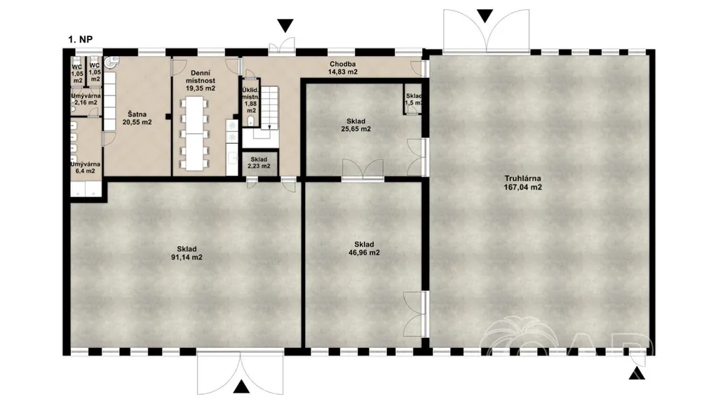skladové a obslužné prostory