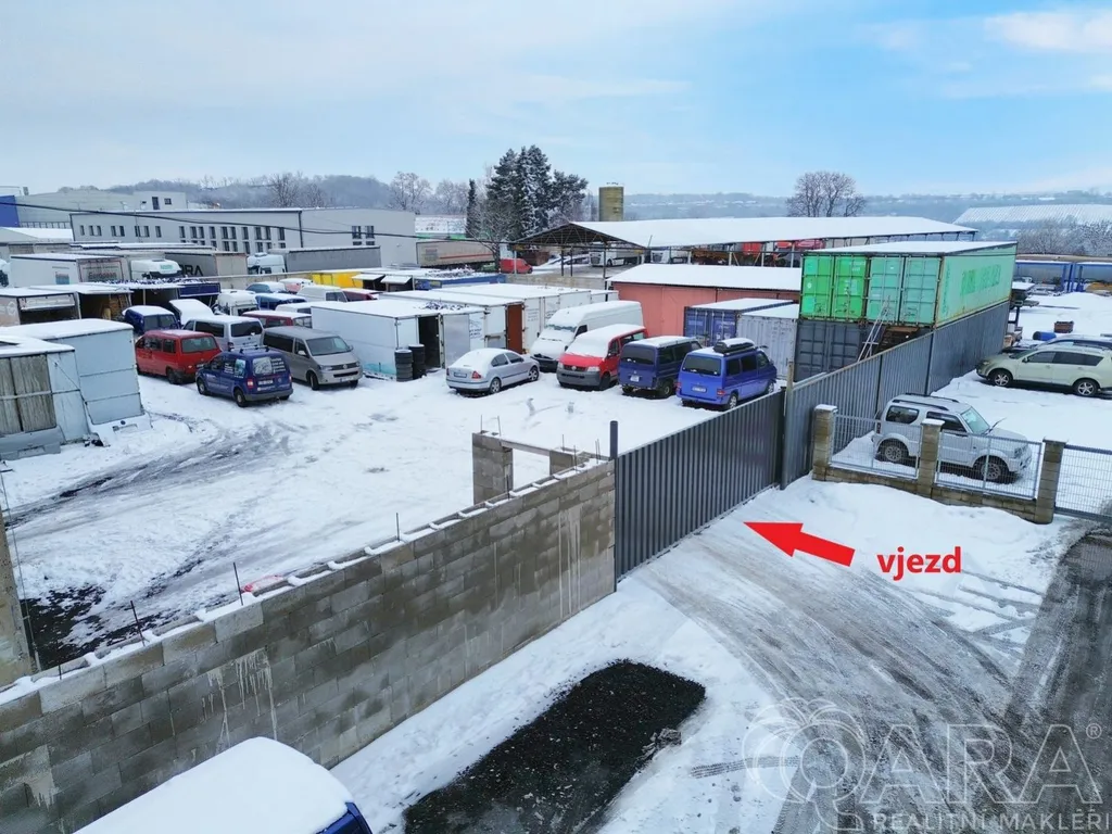zpevněná plocha za halou o výměře 965 m, aktuálně pronajatá (výpovědní doba 3 měsíce) vhodná pro manipulaci, skladování nebo budoucí rozšíření provozu