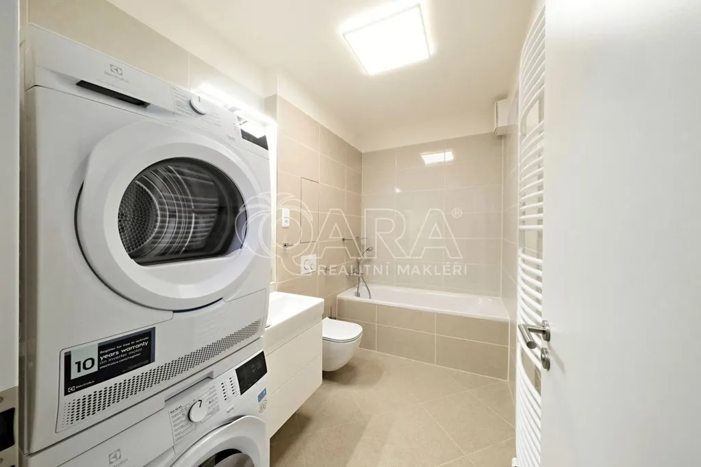 Kuchyňská linka je vybavena spotřebiči značky Elektrolux (vestavěná lednice se samostatným mrazákem, myčka nádobí, trouba, mikrovlnná trouba, indukční varná deska spárovatelná s digestoří). V koupelně jsou k dispozici pračka a sušička Elektrolux.