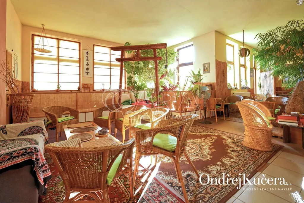 Dům je rozdělen na dvě části. V prvním vchodu se nachází restaurace s potravinami v přízemí. Nad ní je vyhlášená a skvěle hodnocená tradiční čajovna s velkou terasou. V posledním patře je 62 m byt 2+kk a půda. Ve druhém vchodu je music bar v suterénu, pole gym a 41 m byt v přízemí. V prvním patře je velký sál s točitým schodištěm do druhého patra s učební a zázemím. Ve druhém patře je i 90 m byt s dispozicí 3+1. Celkově se jedná přibližně o 1.000 m s velmi zajímavým uspořádáním.