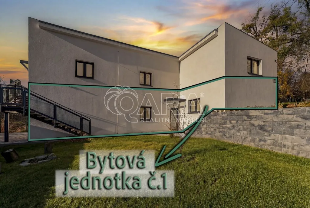 V domě se nachází pouze dvě bytové jednotky, což zaručuje klid a soukromí. K bytu náleží také sdílená zahrada, ideální pro relax i grilování s přáteli.