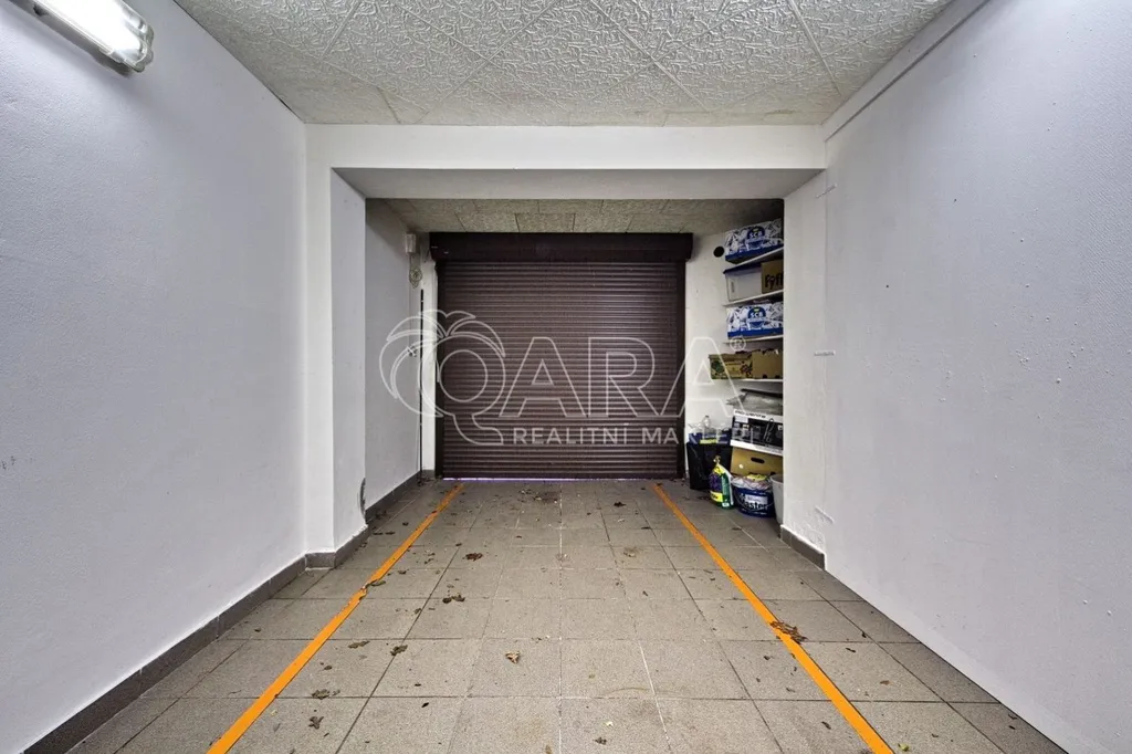 Velkým benefitem bytu je samostatná vytápěná garáž (23,5 m) s denním světlem, která je přímo propojena s bytem. Tento prostor byl částečně upraven a dnes nabízí chytré rozdělení na garáž a samostatnou pracovnu, která je ideální pro práci z domova, konzultace s klienty nebo kreativní činnost.