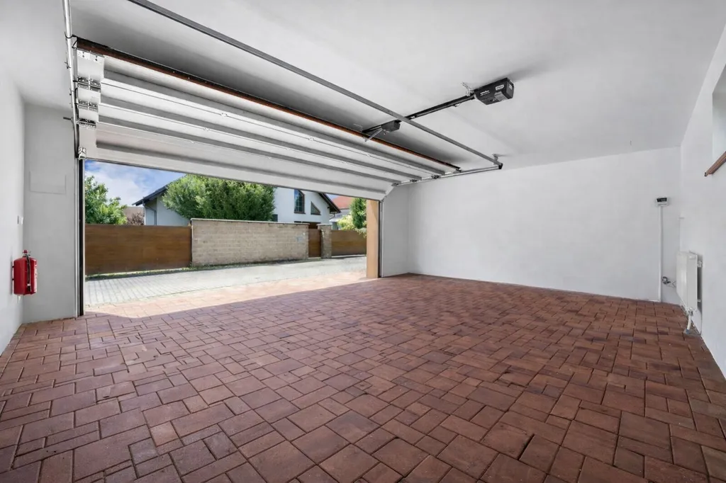 Velkou výhodou nemovitosti je garáž pro dvě auta, kryté parkovací stání (carport) a další parkovací možnosti na pozemku. Samozřejmostí je také zahrada, která poskytuje dostatek soukromí a prostor pro relaxaci, terasu nebo rodinné aktivity.