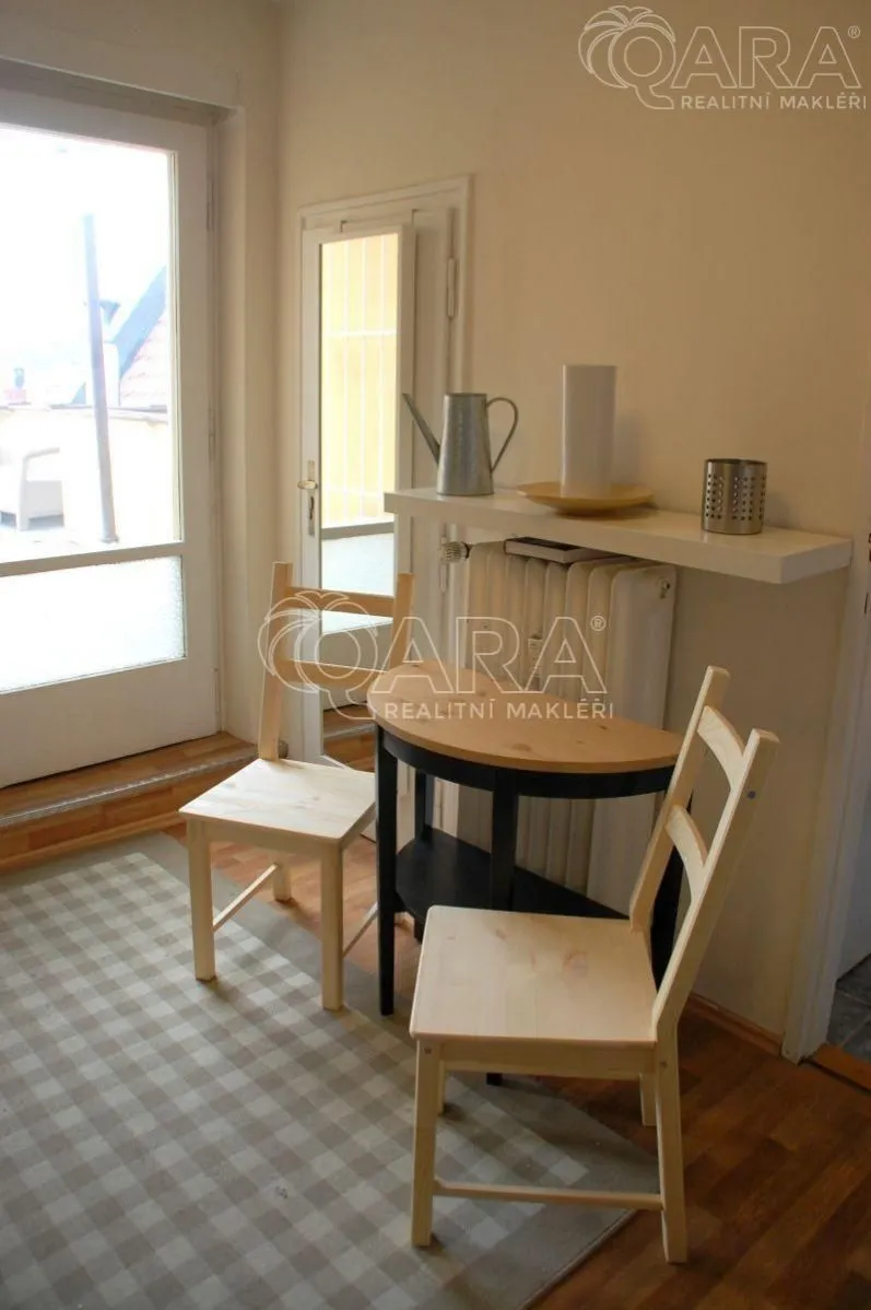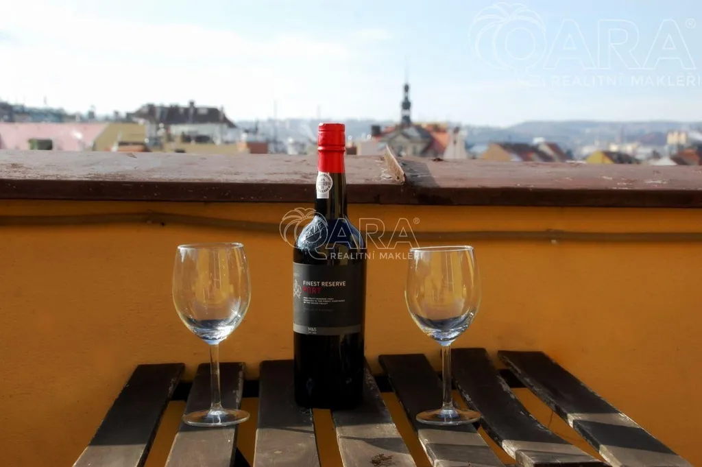 Exkluzivně dlouhodobě, minimálně však na jeden rok pronajmeme slunný byt 1+1, 34 m2 + 26 m2 terasa (s krásným výhledem na Prahu) na Praze 1, pouze 150 m od Staroměstského náměstí. Je situován v 6. patře (7 NP) historického domu s výtahem v Melantrichově ulici č. 466. Po domluvě v bytě možné ponechat nábytek nebo byt pronajmout prázdný.
