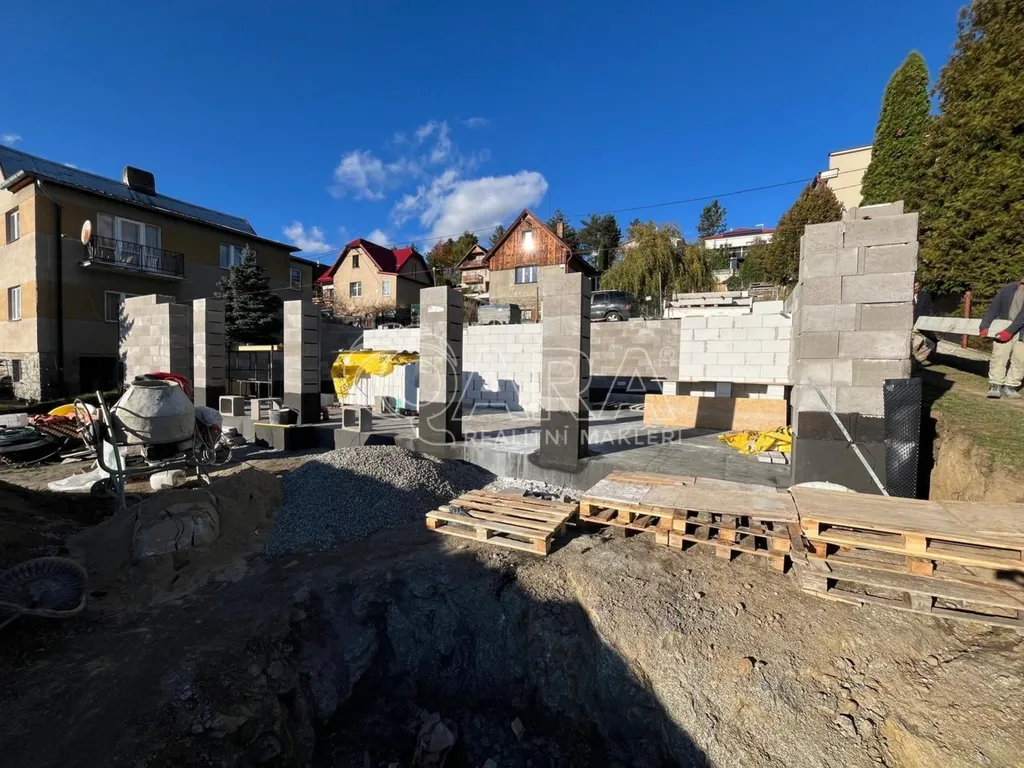 Částečná hrubá stavba suterénu (1. PP) připraveno k pokračování výstavby.