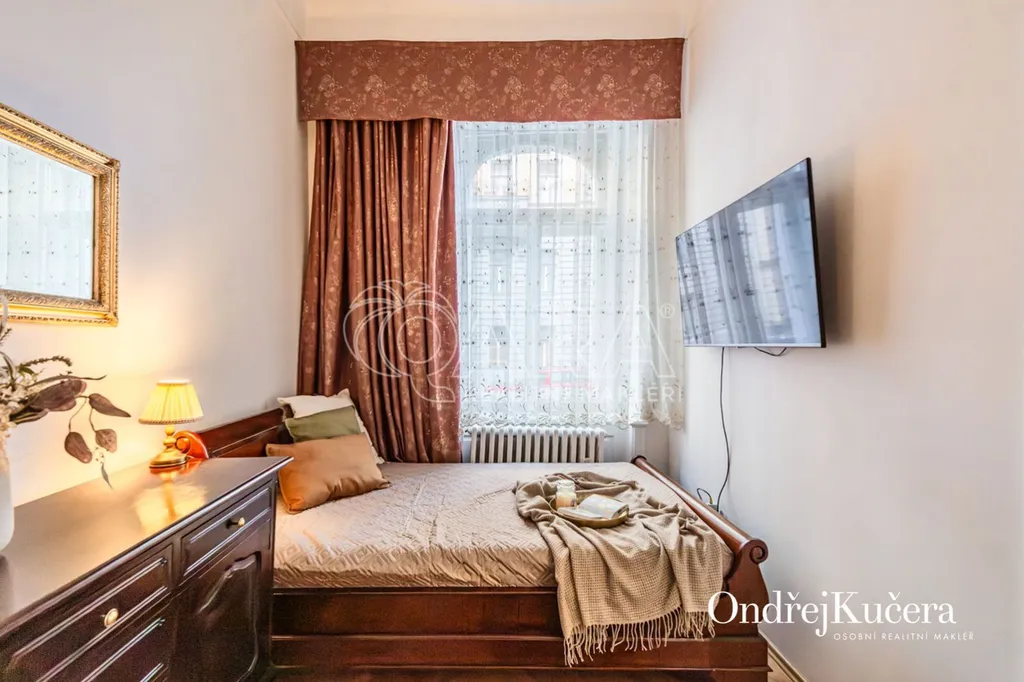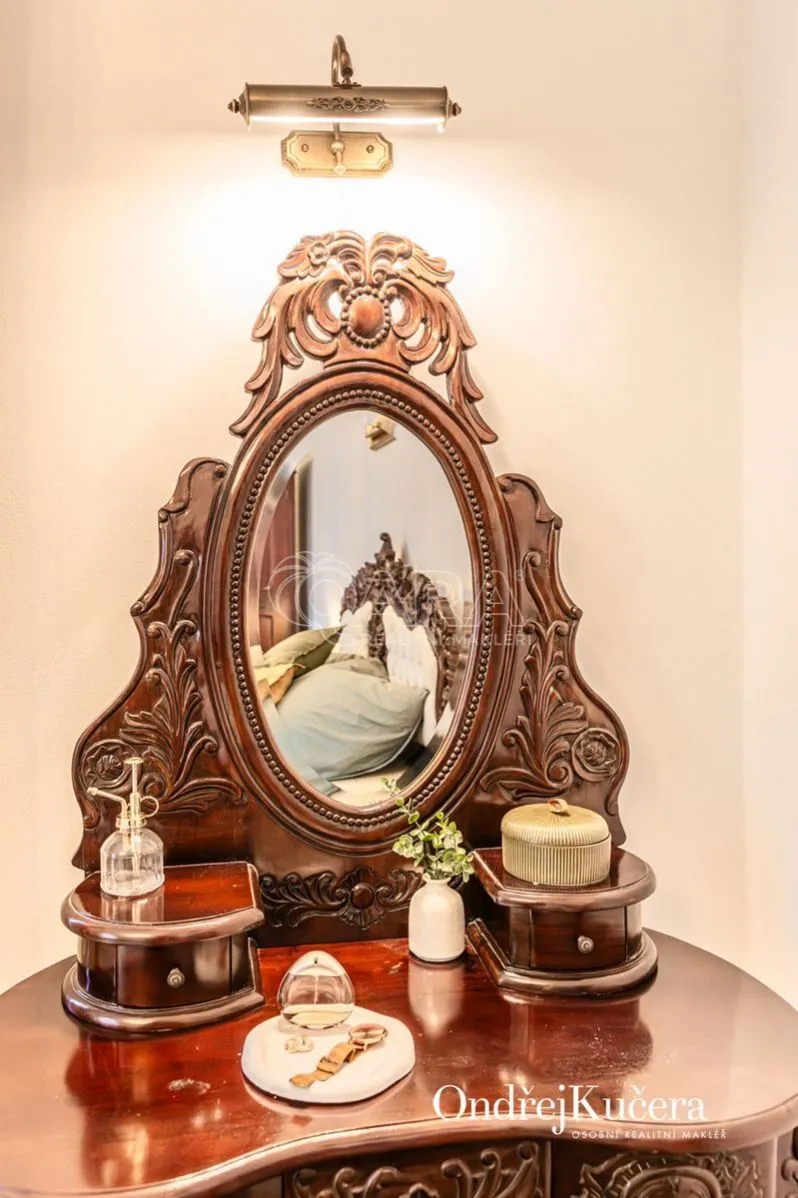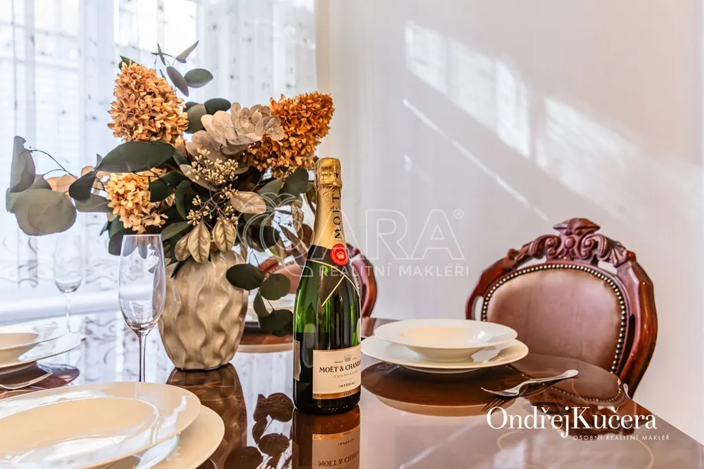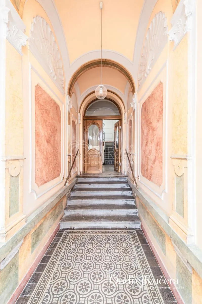 Součástí prodeje může být i kompletní vybavení včetně historického nábytku, což umožňuje okamžité užívání bez dalších investic. K bytu také náleží sklep o velikosti cca 2,5 m a společná chodba pouze pro dva byty.