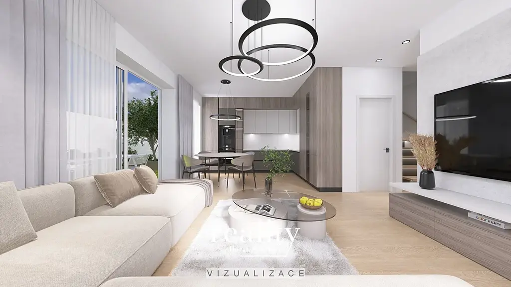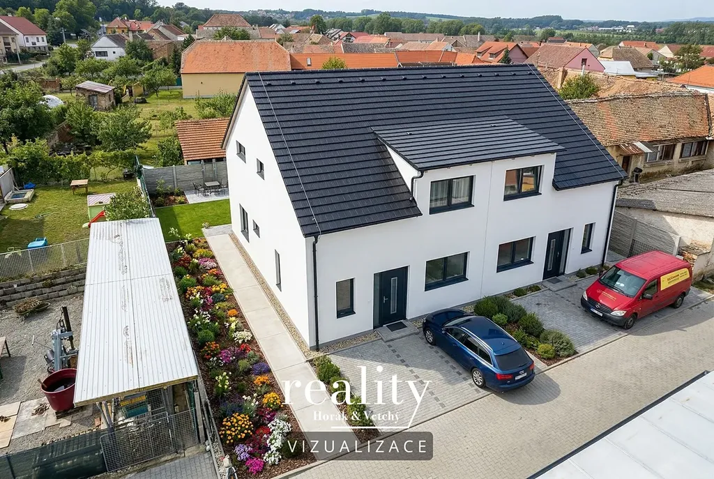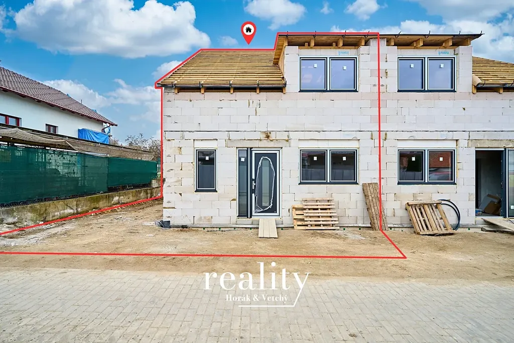 Nabízíme prostorný rodinný dům - jednu polovinu dvojdomku s užitnou plochou 130 m² v klidné lokalitě Božic na Jižní Moravě. Tento moderní dům je momentálně ve výstavbě, termín dokončení je konec května 2026. V ceně je dokončení do fáze - vnitřní podlahové krytiny, vnitřní omítky, rozvody, sanita, armatury, venkovní fasáda, střecha z betonových tašek, úprava terénu, kuchyň podle domluvy. Dispozice domu je 5+KK. Noví majitele zde naleznou vše potřebné pro pohodlné moderní bydlení: prostorné zádveří, na které navazuje prostorná technická místnost s pračkou, sušičkou a místem na topnou jednotku, samostatnou pracovnu, obývací pokoj propojený s jídelním koutem a kuchyní, ze kterého je vstup do zahrady, ložnice propojená s velkou šatnou, dva dětské pokoje a dvě koupelny. V zadní části pozemku naleznete menší zahradu, kde můžete vybudovat oázu klidu a zeleně a relaxu. Jedná se o energeticky velmi úsporný dům s tepelným čerpadlem. Cihlová stavba s energetickou náročností B zaručuje komfortní bydlení s minimálními náklady na energie. Tato nemovitost je ideální volbou pro rodiny hledající moderní bydlení za příjemnou cenu. Celkově lze infrastrukturu v Božicích hodnotit jako dobře rozvinutou s pozitivním trendem modernizace, připomeňme například relaxační centrum s plaveckým bazénem, cyklistické a vinařské stezky "Údolím lásky" , obchody, lékaři, ZŠ a mateřská škola. Znojmo 22 km, Brno 56 km, Vídeň 130 km. Nebojte se investovat do své budoucnosti a začněte si užívat život v novém domově v krásné vinařské oblasti Božic.