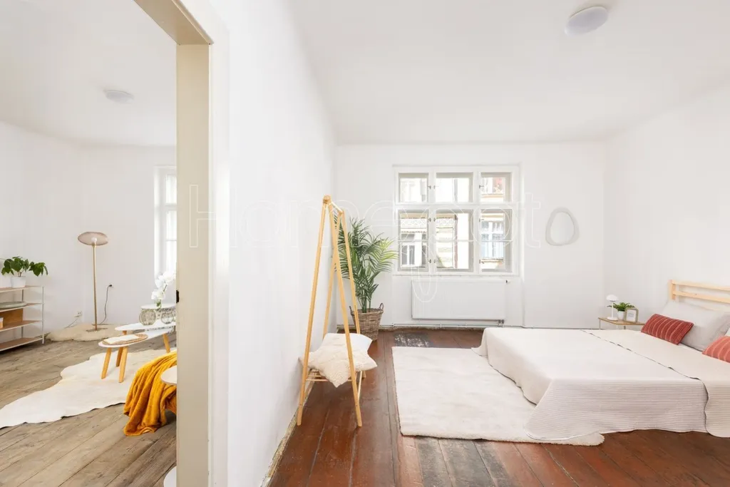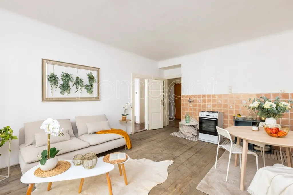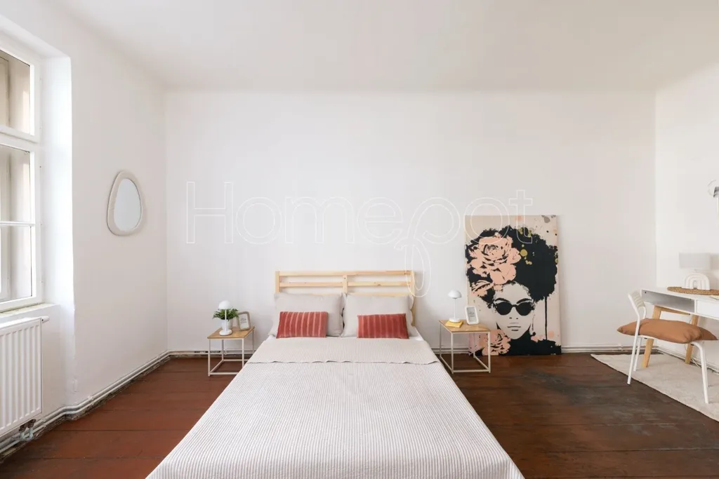 Tento velmi světlý byt, kde světlo během dne dělá svoji práci ráno je jiné než odpoledne se nachází ve 2. nadzemním podlaží historického činžovního domu v ulici Jirečkova, v jedné z nejživějších částí Prahy 7. Podlahová plocha činí 53,1 m.