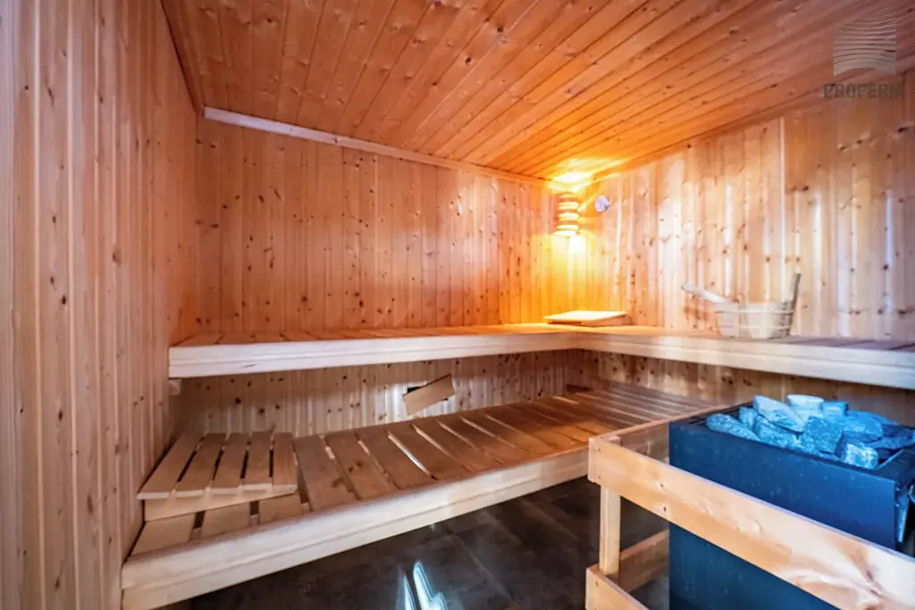 Jedním z hlavních benefitů této nemovitosti je jižně orientovaná zahrada, která nabízí skutečný pocit soukromí a relaxu. Najdete zde elegantní altánek s posezením a grilem, nerezový bazén s invertorovým čerpadlem umožňujícím ohřev i chlazení vody a především samostatný wellness domek se saunou, zázemím a WC, plně napojený na vodu, elektřinu i kanalizaci.