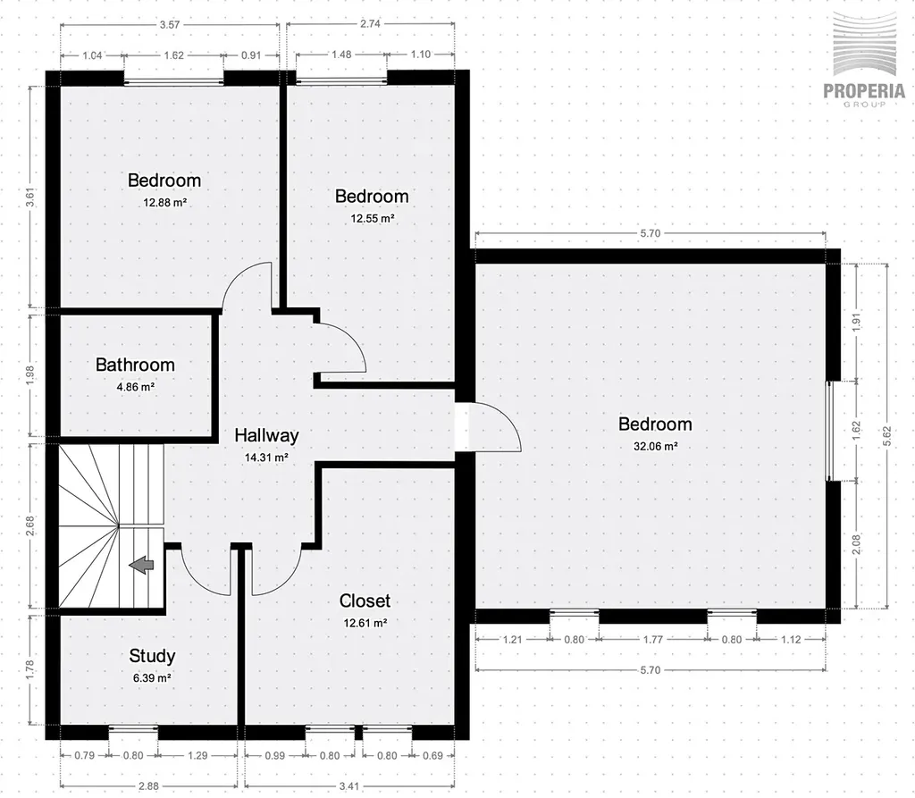 Dispozice domu je navržena s důrazem na každodenní komfort. V přízemí se nachází pokoj pro hosty či pracovna, koupelna, samostatné WC, šatna v zádveří a dvoj garáž. V patře je situována velkorysá ložnice o velikosti cca 30 m², dva dětské pokoje, pracovna, samostatná šatna a druhá koupelna, která zajišťuje pohodlí celé rodiny.