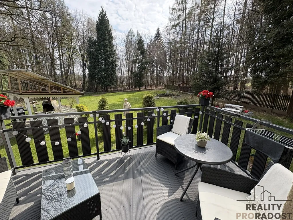 Na rovinatém pozemku přímo u lesa se nachází také stylový altán s posezením a grilem