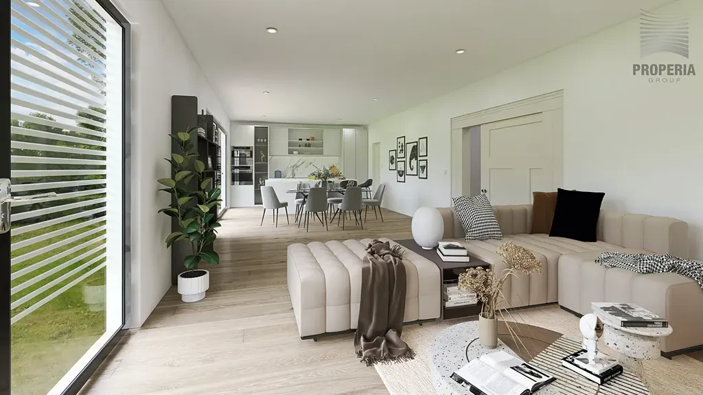 Novostavba domu je součástí nové rezidenční zástavby a nabízí vysoký standard bydlení s důrazem na prostor, komfort a energetickou úspornost.