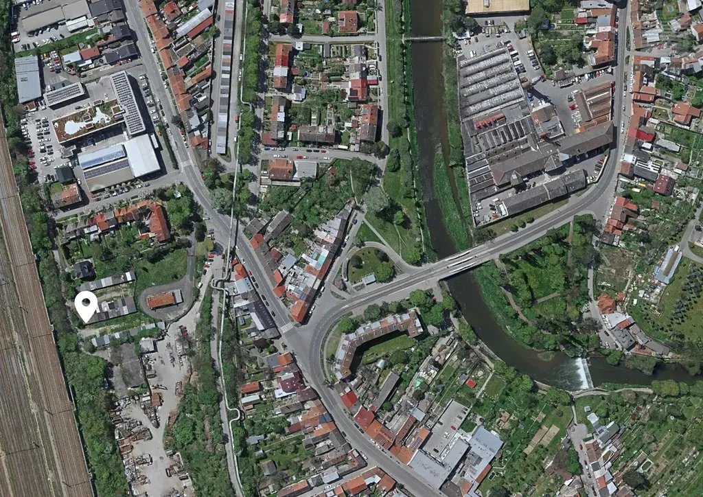 Stavba stojí na pozemku společnosti České dráhy, a.s., které zároveň nabízejí možnost jeho odkupu.