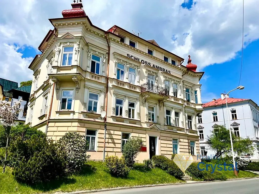 Reality Crystal Vám exkluzivně zprostředkuje prodej bytové jednotky o velikosti 4+kk a rozloze 104 m2 v cihlovém domě Schloss Ambras na Ruské ulici v Mariánských Lázních. Bytová jednotka je po generální a velmi zdařilé rekonstrukci, jsou zde nová okna, podlahy, dveře, omítky, stropy koupelna a kuchyňská linka s vestavěnými spotřebiči, elektrický krb. Rozvody vody, odpadu a elektřiny jsou též nové.