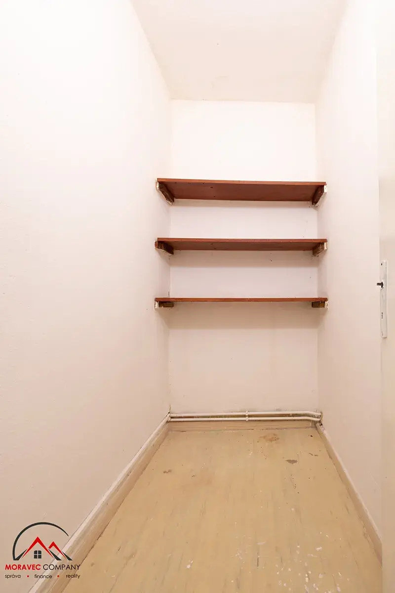 Velkou výhodou bytu je prostorná lodžie přes celou šířku pokoje, vhodná pro posezení nebo relax. V předsíni je dostatek místa pro vestavěné skříně a nachází se zde také samostatná komora, kterou lze využít jako spíž nebo úložný prostor.