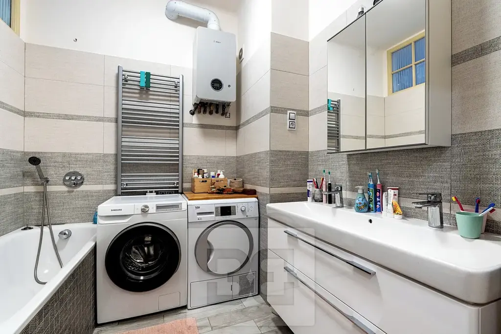 Vytápění zajišťuje vlastní plynový kotel, který umožňuje efektivní regulaci nákladů. K bytu náleží sklepní kóje, k dispozici je rovněž společná kočárkárna a dílna.