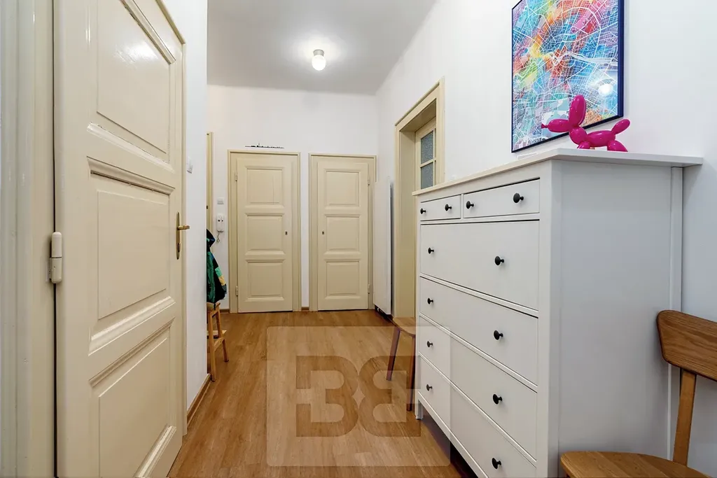 Byt prošel v roce 2021 citlivou a kvalitní rekonstrukcí, která spojuje moderní standard s ponecháním původních prvků ze 30.let (zrestaurované kliky, dveře, původní zvonek) s příjemnou atmosférou. Dispozice nabízí vstupní halu, šatnu/komoru, samostatné WC, praktickou spíž, koupelnu s vanou a tři prostorné pokoje.