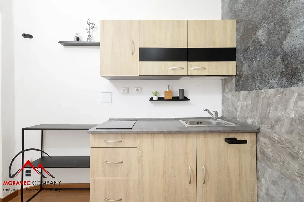 V bytě se nachází pokoj, kuchyně vybavená varnou deskou a koupelna se sprchovým koutem a toaletou. Byt je vybaven a můžete si tedy jen přinést své osobní věci a rovnou se nastěhovat.