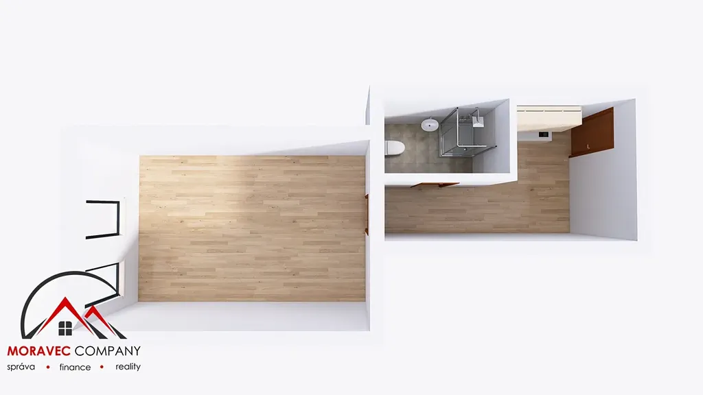 V bytě se nachází pokoj, kuchyně vybavená indukční varnou deskou a koupelna se sprchovým koutem a toaletou.