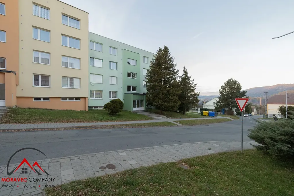Nabízíme k dlouhodobému pronájmu byt v osobním vlastnictví o dispozici 2+1, který se nachází na ulici nám. Sv. Michala ve Vrbně pod Pradědem. Byt se nachází v 3. nadzemním podlaží panelového domu o celkové velikosti 59,03 m², k bytu náleží sklepní kóje.