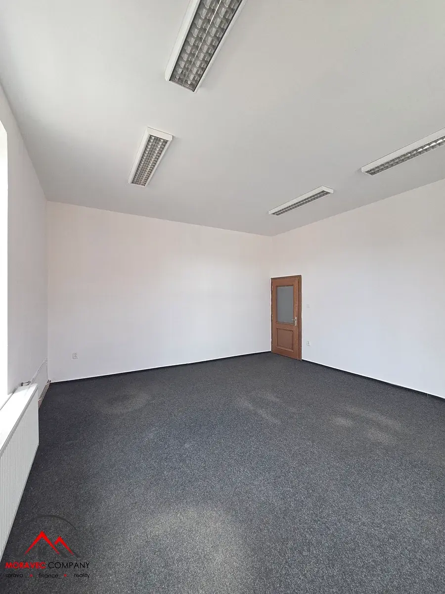 K dispozici jsou 3 samostatné kanceláře o výměrách cca 6×6 m² a 6×5 m², ideální pro menší firmy, podnikatele nebo jako zázemí pro externí pracovníky.